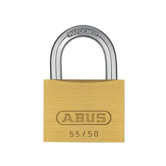ABUS 55 Series Brass Padlocks have inner components made from non-corrosive materials. Pin tumbler cylinder with anti-pick mushroom pins which resist picking, a hardened steel shackle which resists hacksaw attacks and double bolted 30mm and above for increased shackle strength.