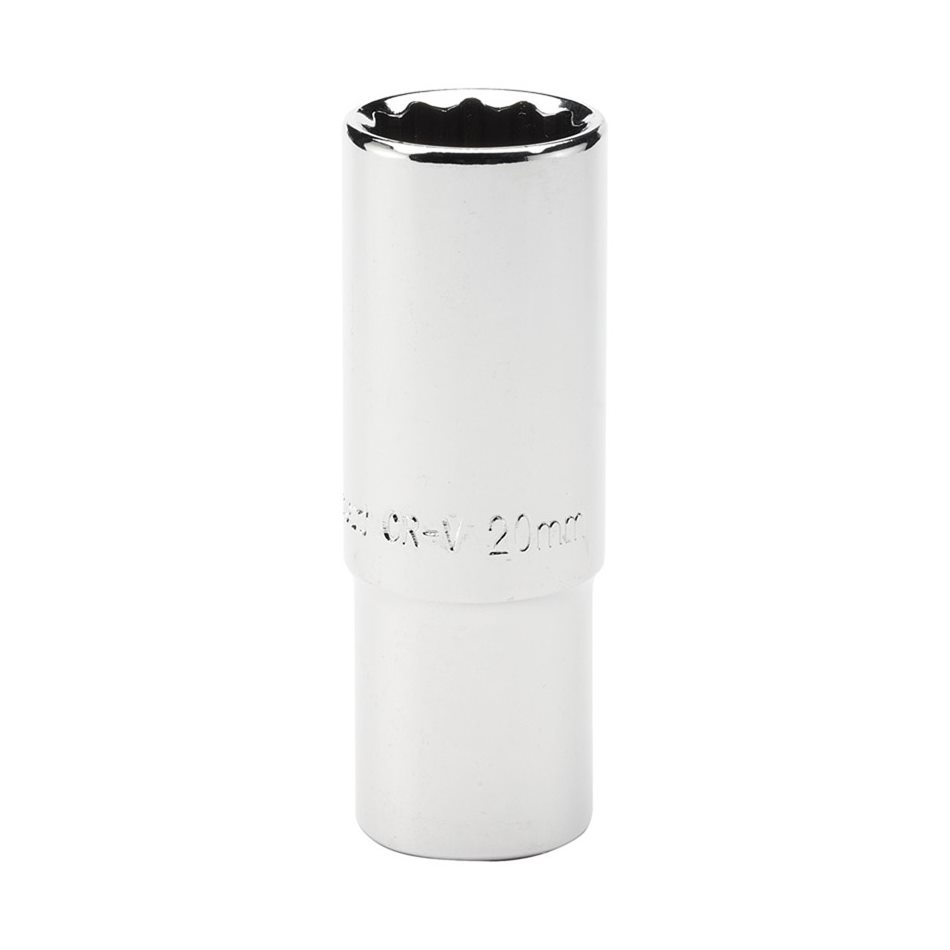 Deep 12 point sockets manufactured from chrome vanadium steel hardened, tempered, chrome plated and polished for corrosion protection. Chamfered end allows for positive nut location. Overall length of 80mm.