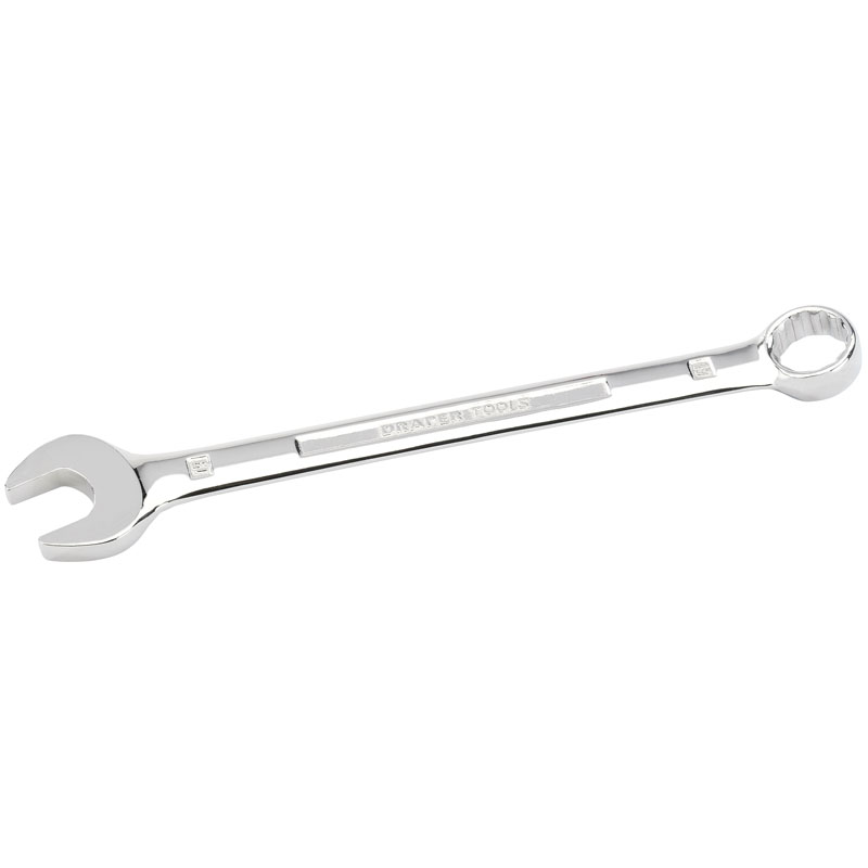 Draper Expert Quality Hi-Torq deep offset ring end cranked at 15 degrees. Open end set at 15 degrees. Long pattern forged from chrome vanadium steel, hardened, tempered, chrome plated and fully polished throughout.