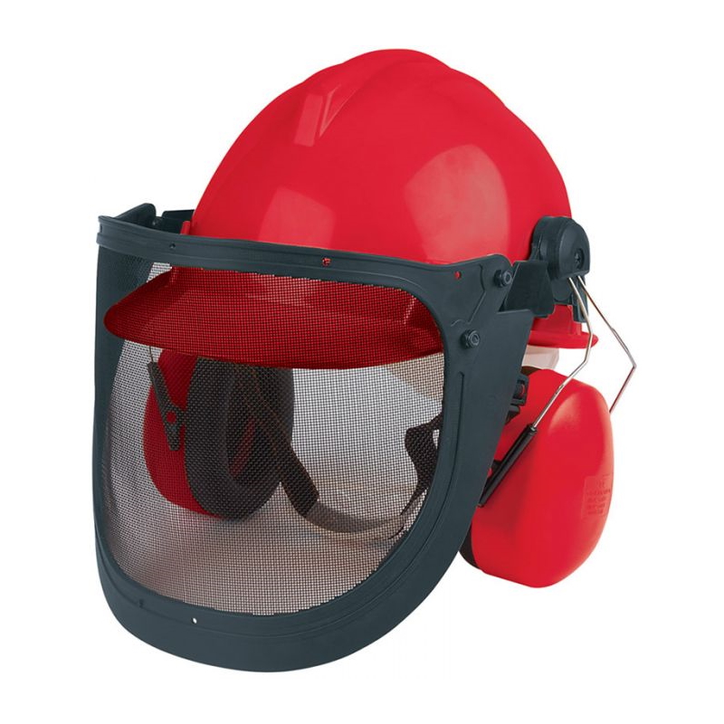 Expert Quality, ABS durable shell, complete with face/eye visor, adjusstable elasicated chin strap and noise protection ear defenders.