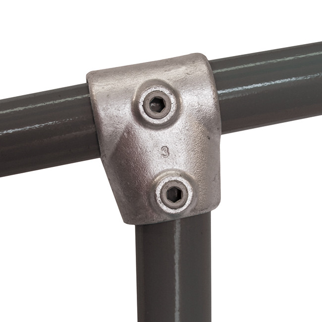 The Short Slope Tee 0° to 11° C51 provides a Tee joint between two tubes for use on ramps with a variable angle that allows the fitting to accommodate slopes up to 11°.