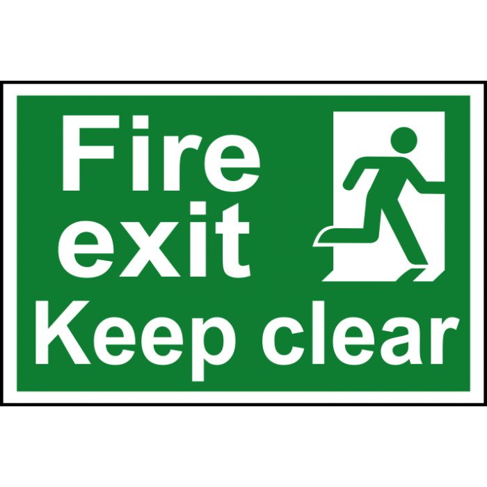 “Fire exit Keep clear” text only sign made from high quality rigid PVC & measures 300 x 200mm.