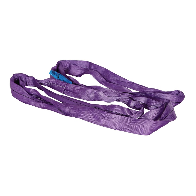 High strength flat webbing single slings with reinforced lifting eyes. Chemically resistant to oils, organic solvents, alcohols, acids and water including sea water.