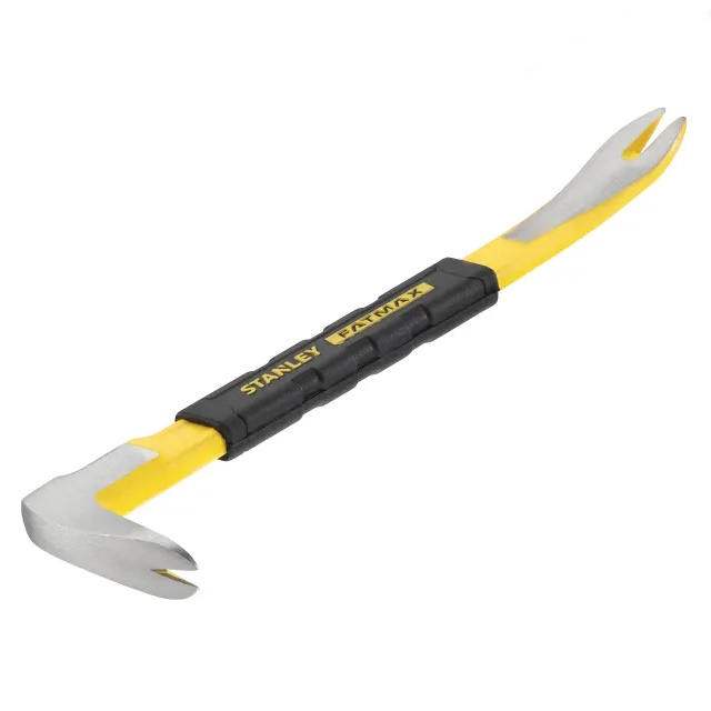 This Stanley FatMax Claw Bar is manufactured from spring steel for durability with a high visibility powder coated finish and polished tips. The polished bevel claws allow for precision nail pulling and prying and the non-slip grip provides increased leverage.