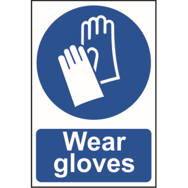 “Wear Gloves” sign made from high quality rigid PVC & measures 200 x 300mm.
